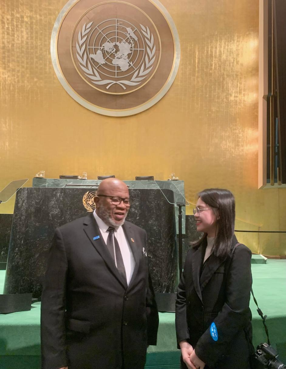 成功来之不易,背后离不开广外多年来鲜明的国际化人才培养体系和浓厚的学术交流氛围。全媒体国际传播创新班设置的“卓越国际新闻报道工作坊”、“跨文化传播”等课程,培养了曹咏仪过硬的专业能力,让她能够快速适应联合国跨文化交流的环境,也让她能够将自己的专业所学应用于实践,在国际舞台上讲好中国故事。在联合国举办的UN KIDS DAY活动中,她从学习操作VR设备到反复测试滤镜,从收集主题资料到设计宣传材料,从提前联系参与各方到现场的沟通协调,独立完成所有宣传方面的工作,让活动广受好评。“从独立拍摄照片、剪辑视频,再到撰写新闻稿,我强烈地感受到自己在学校学习的知识在联合国实现了教育闭环。”回望自己的联合国实习生涯,曹咏仪由衷感慨道。