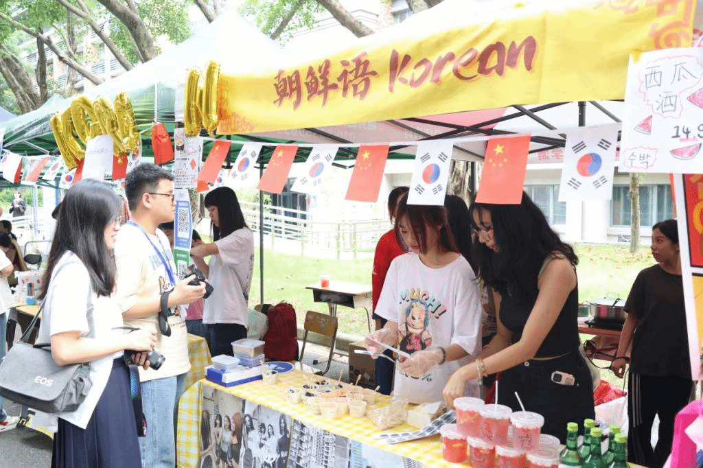 美食集市上,各语系学生身穿对象国的特色服饰,在摊位上精心准备对象国的经典美食,吸引来客前来品尝。有来自阿拉伯的沙瓦玛卷饼,伊朗的藏红花鸡汤,朝鲜族的辣炒年糕,坦桑尼亚的羊肉抓饭,土耳其的米布丁,巴基斯坦的灌汤脆球,希伯来语的法拉费丸子,印度的咖喱料理,孟加拉国的特色小吃拼盘等不同地域的美食。此外本次文化节还联合了中国文化摊位,共同欣赏中文书法,感受中华美食。参与者沉浸在多元文化之中,领略不同文化的魅力。