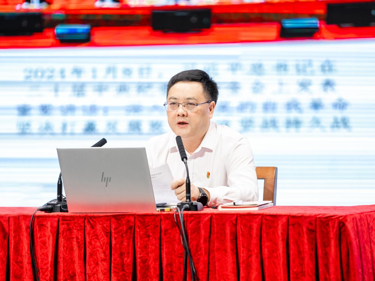 石佑启以“学党纪、强党性、守规矩,为学校事业高质量发展提供坚强的纪律保证”为题,从开展党纪学习教育的重要意义、目标要求和主要内容等三个方面作了系统阐述,并就如何以纪律教育成效保障学校事业高质量发展提出了具体要求。石佑启指出,开展党纪学习教育,是深入学习贯彻习近平总书记关于党的自我革命的重要思想的必然要求,是加强党的纪律建设、推动全面从严治党向纵深发展的重要举措,是推动国际化特色鲜明的高水平大学建设的坚强保障。他详细阐述了如何准确把握学习目标和学习内容,指出党员干部要在学习中强化政治意识、增强组织观念,涵养清风正气、树牢群众观点,强化责任担当、锤炼品德修为,严守“六大纪律”,真正做到学纪、知纪、明纪、守纪。石佑启表示,要把开展党纪学习教育同贯彻落实习近平总书记重要讲话重要指示精神结合起来,同深化作风建设结合起来,同提升干事创业能力结合起来,为学校高质量发展提供强大的动力和坚实的保障。
