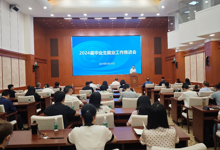 学生就业创业中心主任康为茂汇报了学校2024届毕业生就业工作进展情况,并对2024届毕业生就业工作面临的问题和下一步工作安排进行介绍。他表示,面对当前紧迫的就业形势,下一步要继续深挖就业岗位,更大力度拓展就业岗位渠道;精准帮扶重点群体,做好困难毕业生兜底帮扶工作;充分利用政策性岗位,推动毕业生通过政策性岗位实现就业;加大毕业生就业观念引导,帮助毕业生树立正确的择业观、就业观。