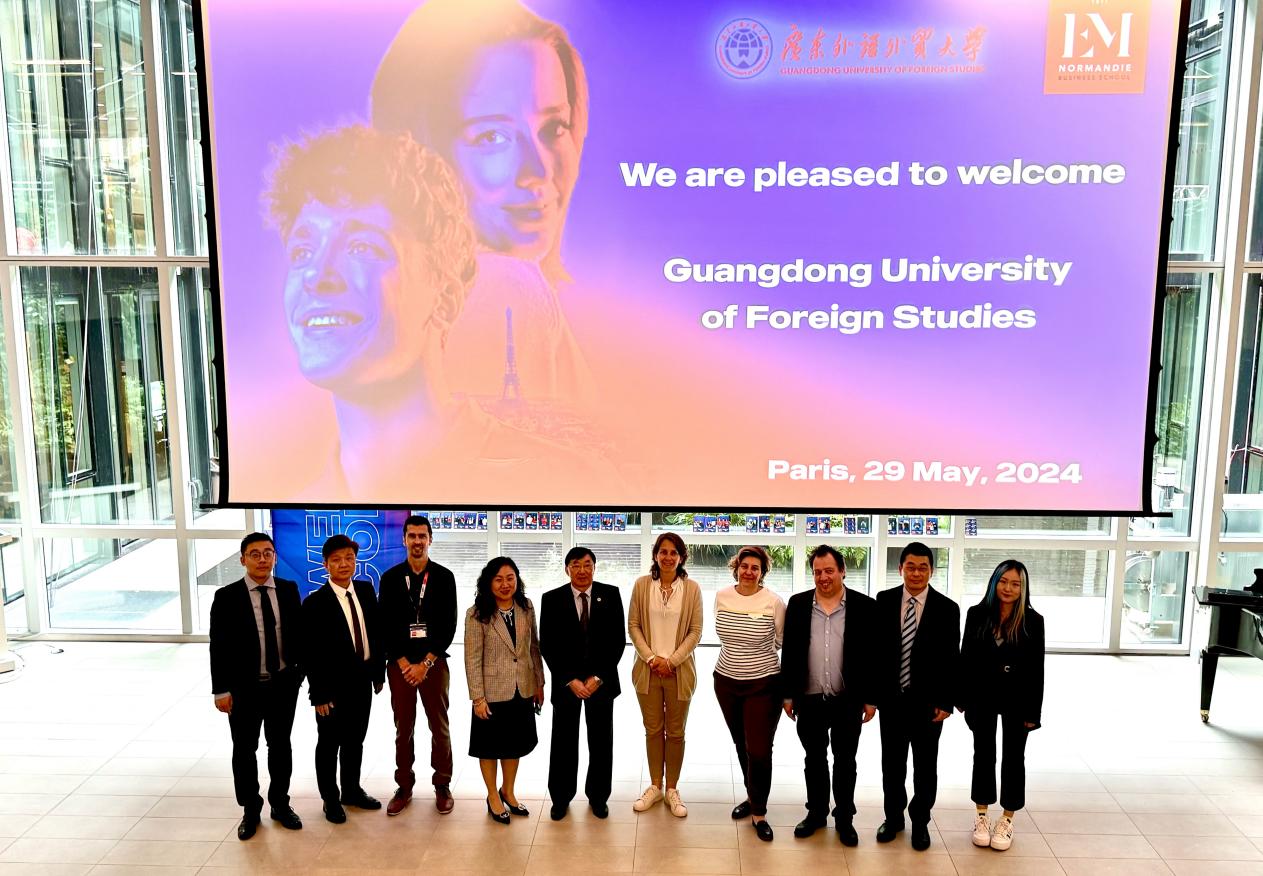 在到访法国诺曼底管理学院期间,李云明一行与该校校长Elian PILVIN和项目部部长Anne-Sophie Courtier等人进行会谈。李云明介绍了我校的基本情况、学校发展历史及国际化办学特色。诺曼底管理学院始建于1871年,是法国历史最为悠久的精英高等商学院之一,也是世界前1%获国际AACSB、EQUIS和AMBA三大认证的教育机构之一。双方以现有联合申报中外合作办学合作项目为基础,重点讨论新的合作模式和合作项目,并重点介绍了本月底我校赴诺曼底管理学院卡昂校区开展“广外视界行”的方案等。双方希望在延续现有合作基础上,进一步扩大合作范围,包括共同建立合作研究中心、联合发表学术文章等。