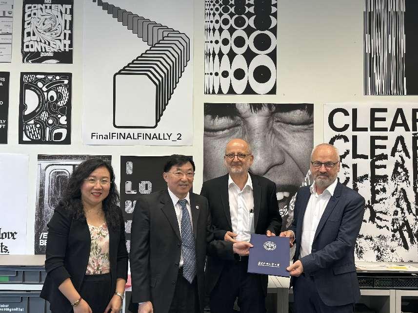 李云明一行拜访了德国传媒大学。德国传媒大学建于2009年,设柏林、法兰克福、科隆三个校区,是一所集教学和科研为一体的应用型大学,为我校在德国首都柏林的新增合作院校。该校董事会主席RonaldFreytag和校长Klaus-DieterSchulz热情接待了代表团,并表示愿意加强推动双方的教育交流,促进中德教育合作。双方分别介绍各自院校的整体信息和特色专业,就两校未来合作模式进行了讨论,并交换了两校合作备忘录。