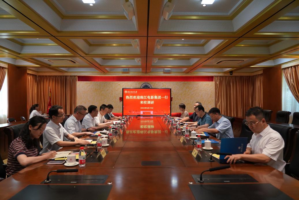 本网讯 6月19日,珠江电影集团党委书记、董事长王义军一行来访我校交流调研,洽谈合作。校党委书记石佑启出席交流座谈会。会议由校党委副书记唐锐主持。