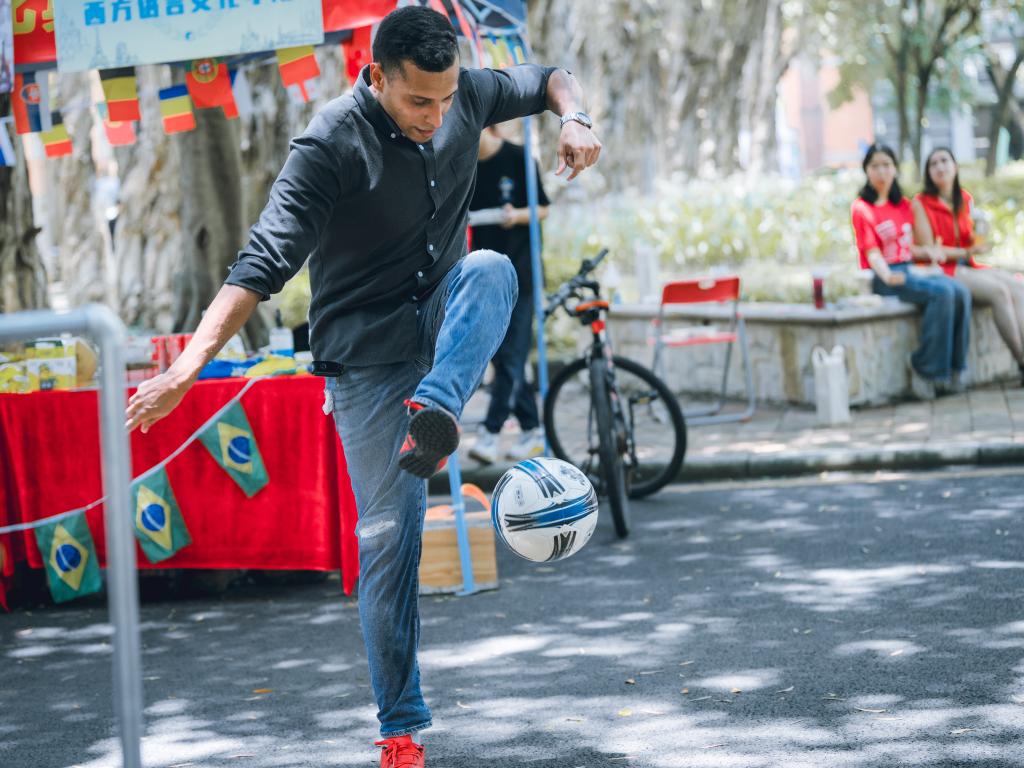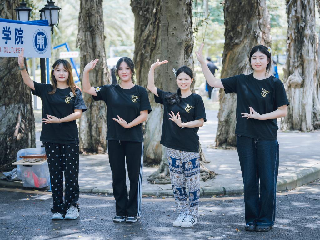 在墨香雅韵活动现场,古典韵味的装饰、充满中国古典元素的汉服、独具特色的漆扇文化融合展示。现场还展示了与中国非遗文化紧密相关的创新创业项目,让同学们感悟中国传统非遗文化魅力的同时体验大学实践活动的乐趣。为更好地宣传学院特色,创意市集上汇聚了世界各地的文化精粹。西班牙的面包香气四溢,特色饮品清爽可口;印尼的昂格隆乐器和哇扬戏带来了独特的艺术体验;泰国文化打卡框和卡通泰国服饰展示台尽显异域风情。体验了印尼昂格隆乐器的唐同学表示,“这里让我感受到了各国文化的交融与碰撞,视野得到拓展,这种文化体验真是很有趣、很奇妙,希望有机会来广外就读。”