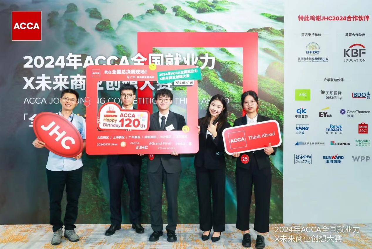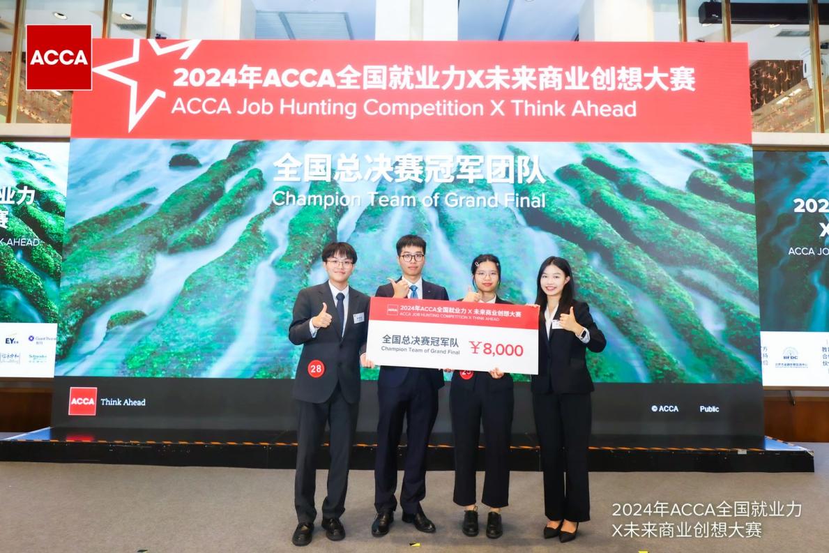 本网讯 7月31日,2024年ACCA全国就业力x未来商业创想大赛全国总决赛在广州落下帷幕。经过初赛(财会基础双语测评)、复赛(ESG案例浅析)、线下华南地区区域决赛(团队全英展示答辩)和全国总决赛的案例分析展示等四轮角逐,会计学院ACCA方向班的聂隽逸、何睿熹、梁文昊、杨明浚同学组成的Witty队伍在全国逾万名参赛选手中脱颖而出,夺得全国总冠军,这是继2022年ACCA全国就业力x未来商业创想大赛全国总冠军后,再次获此殊荣。