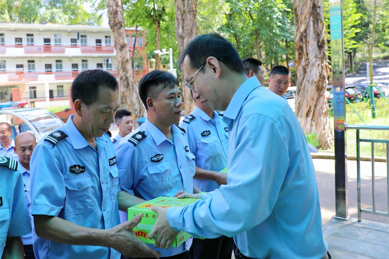 申明浩详细询问工作状况,叮嘱他们做好本职工作的同时,要注意身体健康,做好防暑降温措施,并送上清凉慰问品。