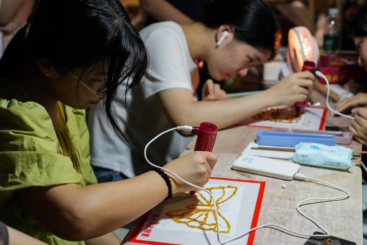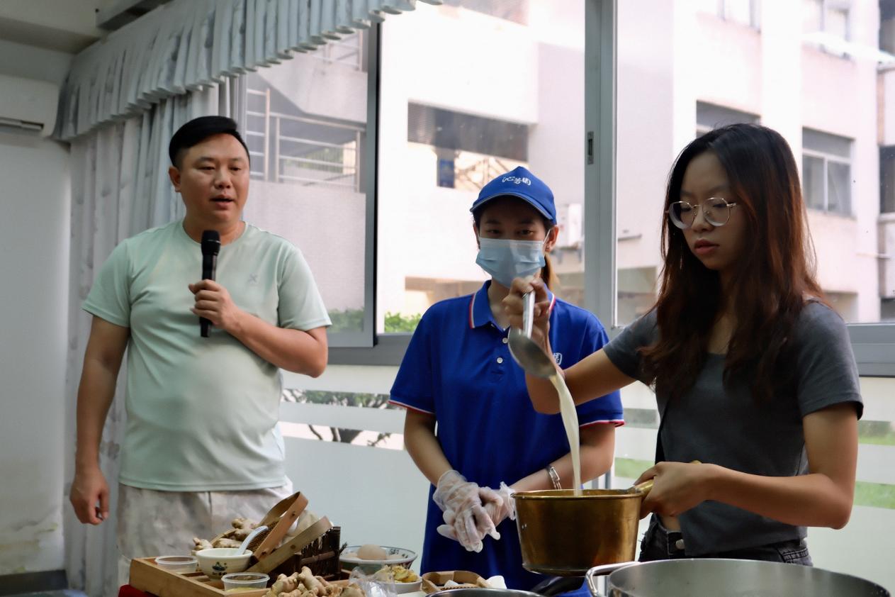 追古溯今,千载一瞬。中华优秀传统文化摊位,让广外师生穿越文明繁华。秦朝投壶、汉朝剪纸、唐朝诗歌酒令、宋朝点茶作画、清朝中国结等让师生徜徉在中华五千年文化之旅中。身着汉服唐装猜emoji里的历史,现场制作《红楼梦》中的玫瑰卤子气泡水与点心月光糕、晶莹剔透的糖画和冰糖葫芦,让师生纷纷感受到传统文化的生命力。雕刻细腻的佛山木版年画、精美绝伦的岭南押花艺术、奶香四溢的沙湾姜埋奶、活灵活现的大吴泥塑、妙趣横生的木偶戏体验精彩亮相,吸粉无数!
