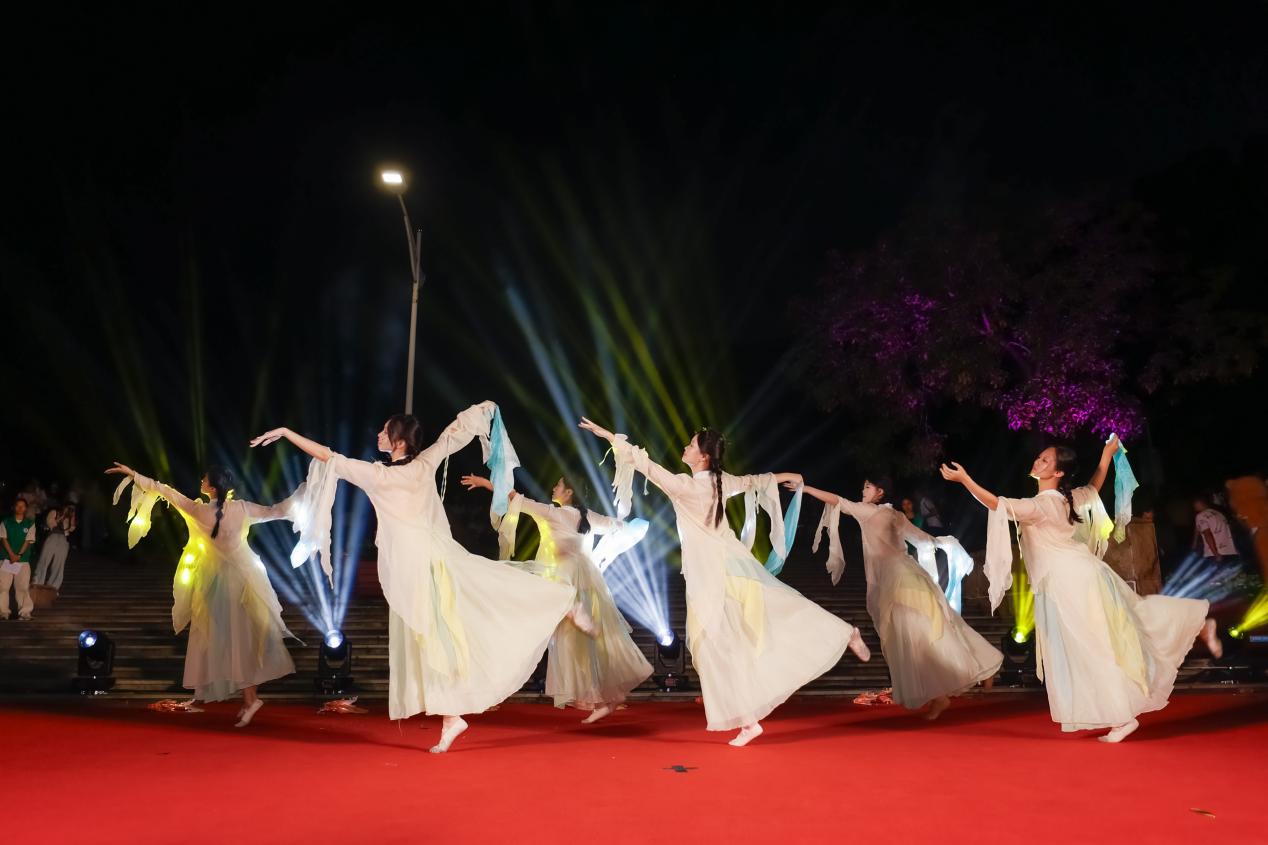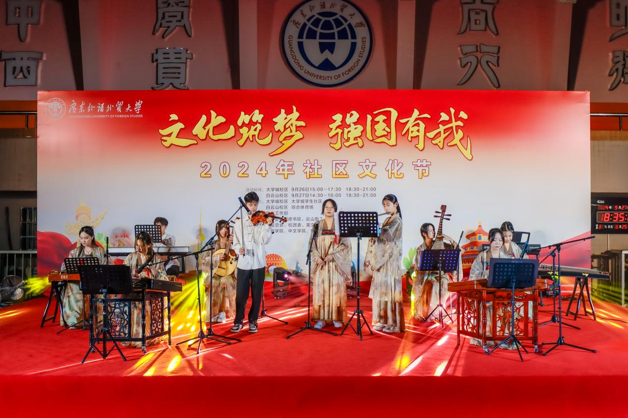 以歌为媒,以舞会友。“青春献礼强国”学生节目表演精彩纷呈,展现古今文化、中外文化的交融,传达了广外“学贯中西”的校训精神和“包容、自信”的价值观。一筝一笛,一舞一袖,民族器乐表演《浮光》、汉服走秀《绮梦年华》、民舞《舞山河》等传统文化表演,呈现古色古韵;一拳一剑,一唱一喝,武术《广袤英豪立武魂》、合唱《我爱你中国》等爱国节目展演,颂扬国家昌盛;拉丁舞《Dance with us》、英文歌曲串烧《Best of 2012》等特色节目彰显国际情怀。现场氛围热烈庄重,不仅丰富师生的校园文化生活,也进一步激发了学子的爱国热情与文化自信。