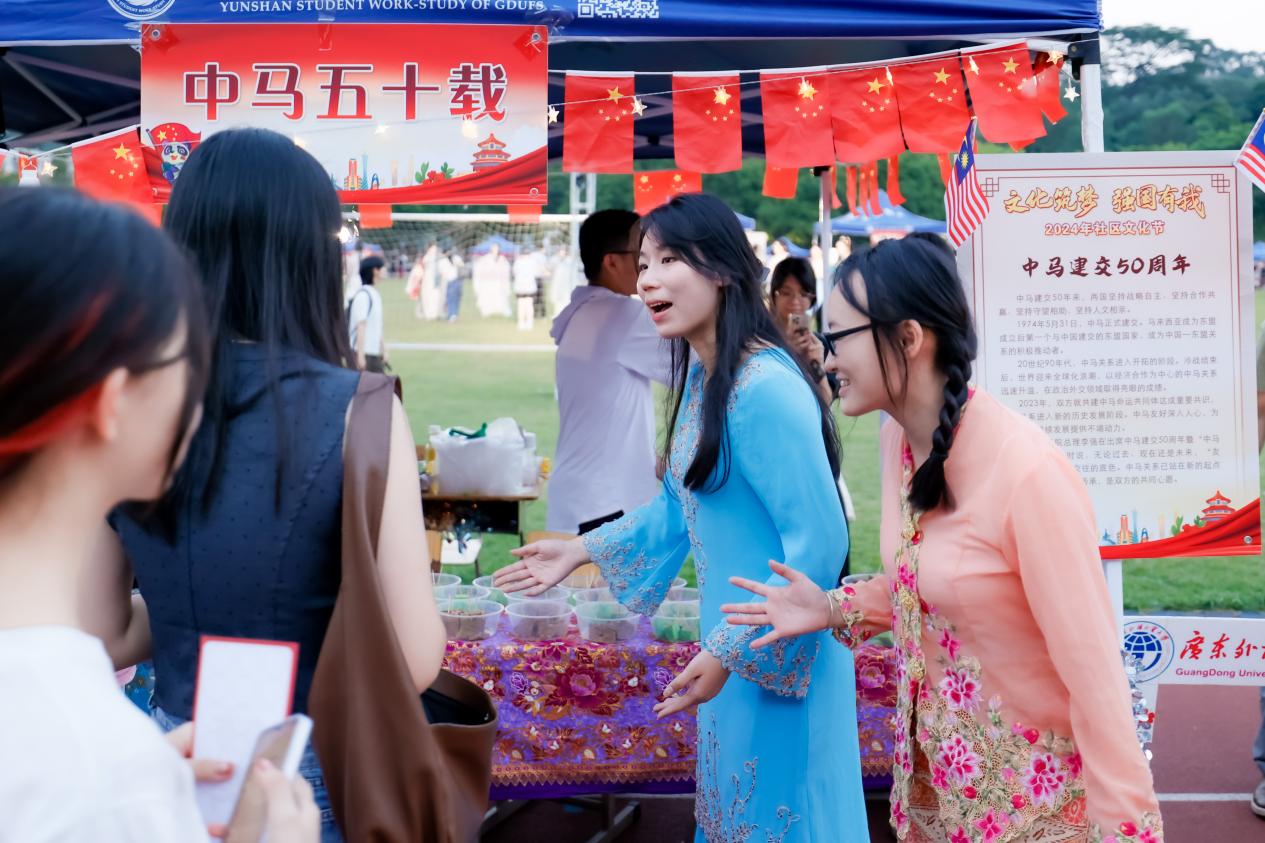 大国情怀,四海同心。“赓续丝路精神•中朝七十五载”“中马五十载•携手并进”等摊位,展现海陆丝绸之路的盛景与中国开放、包容、有担当的大国姿态。“中法建交六十载”等特色摊位,通过美食、游戏展示中国与世界各国的友好交往历程,传递团结奋进、开放包容的正能量,为构建人类命运共同体传递广外声音。