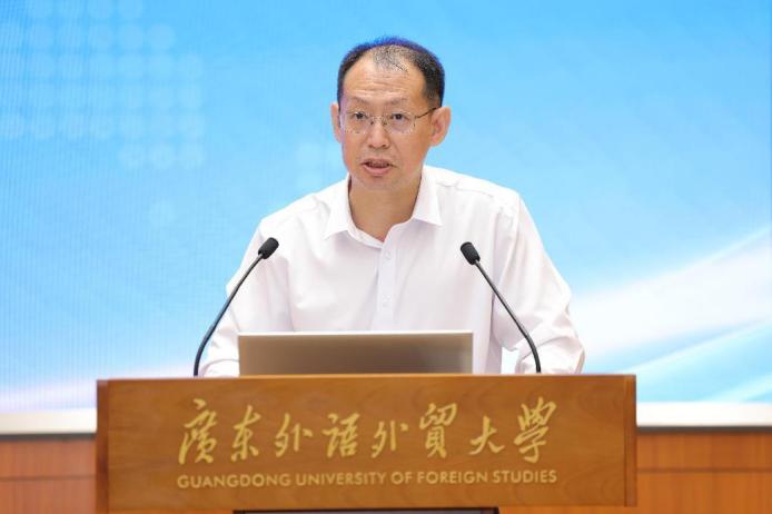 广东外语外贸大学副校长申明浩教授代表广东外语外贸大学,向出席本次会议的嘉宾表达了诚挚的谢意和热烈的欢迎。在致辞中回顾了论坛的发展历程,并强调了中国式现代化与全球化的紧密联系。他提到,全球经济治理在多个领域,包括贸易投资规则、金融治理、产业链供应链治理、气候变化、经济不平等方面,将面临日益增多的挑战。期待各位专家学者在论坛上能为全球经济治理研究提供更多的思路。