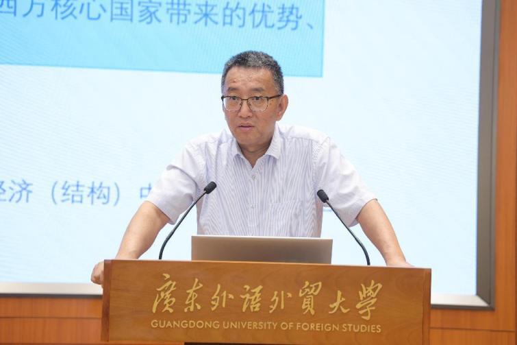 香港中文大学(深圳)人文社科学院宋新宁教授发表了题为“全球经济治理的政治经济学视角”的精彩演讲。他强调了政治经济学方法是分析全球经济治理问题的重要方法之一,指出全球经济治理不仅涉及国际贸易、货币金融、对外投资和援助等经济问题,还涵盖了国际制度、国际组织和国际规范等制度层面。并进一步探讨了国家政策在全球治理中的作用,以及国家间在国际体系中的地位和互动。