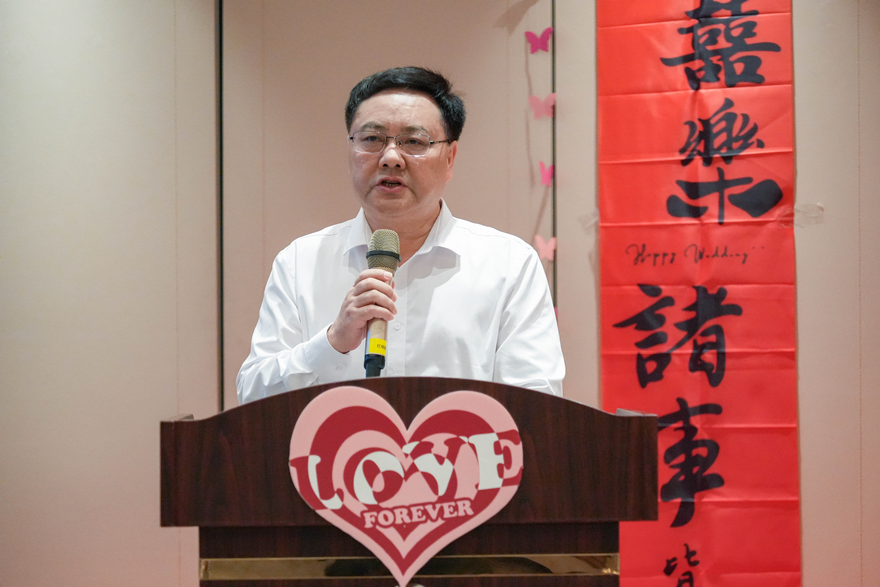 石佑启代表学校党政领导向金钻婚夫妇表示热烈的祝贺与美好祝愿,为他们颁发了纪念戒指、证书、贺金,并向全体离退休教职工送上节日的问候。他在致辞中指出,金钻婚夫妇是我们后辈学习的榜样,也是支撑学校事业发展的强大力量。明年,我校将迎来建校60周年。他表示,将继续发扬老一辈广外人的优良传统,牢记为党育人、为国育才的初心使命,落实立德树人的根本任务,锚定学校“冲一流”和高水平大学建设的目标,全力推进学校教育事业的高质量发展,为加快建设教育强国,以中国式现代化全面推进中华民族伟大复兴贡献更多的广外智慧和力量。