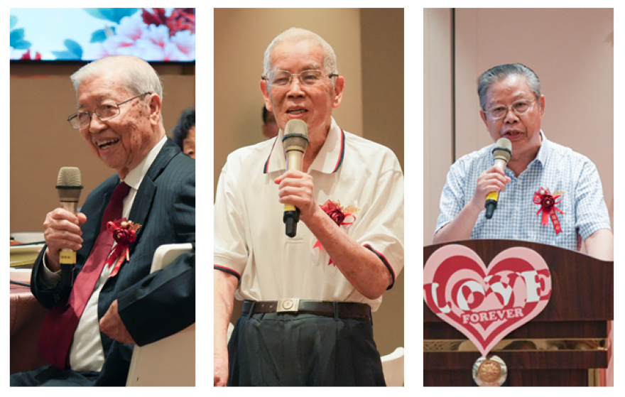 金钻婚夫妇代表梁世彬、黄建华、黎佑均先后发表幸福感言,感谢学校领导的关怀,感谢离退休部的精心安排和贴心服务,表达对老伴的感激之情,回忆在物质困乏年代携手相伴、风雨同舟的往事,并表示将一如既往地互相关心、互相爱护、互相帮助,在力所能及的范围内,关心国家大事,参与公益事业,将正能量保持终生。