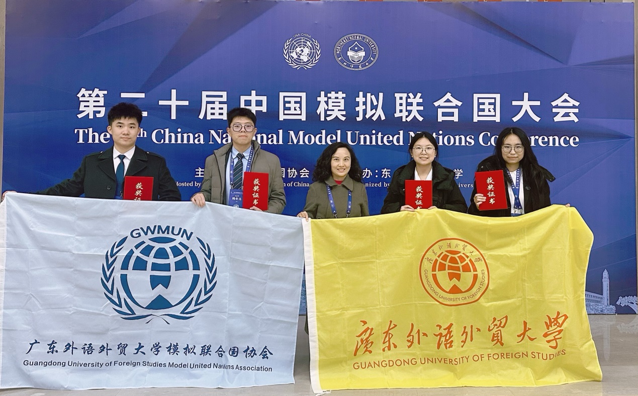 本网讯 10月24日至27日,第二十届中国模拟联合国大会在东北师范大学召开。我校派出的代表团再次荣获“杰出代表团奖”。我校代表团由广外模拟联合国协会指导老师孙章季副教授带队,成员有经济贸易学院国际组织创新班韩冬洺,国际关系学院刘晓阳、倪凘琦、唐鑫。