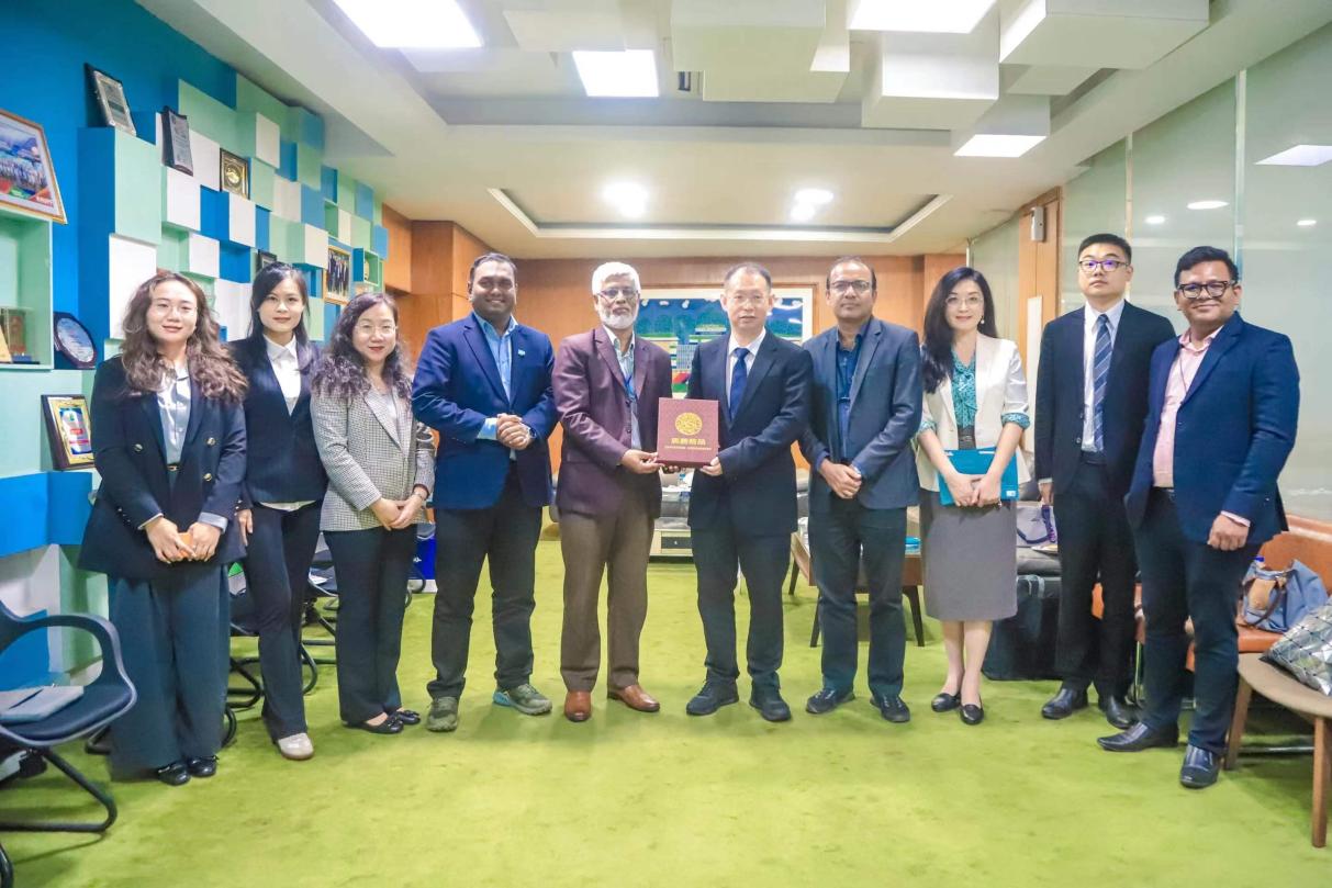 在孟加拉国水仙花国际大学(Daffodil International University)访问期间,双方作深入合作洽谈。水仙花国际大学是亚洲大学校长论坛(AUPF)成员高校,与我校于2018年11月开展多方面合作,具有良好的合作基础。该校商学院院长伊克巴尔(Prof.Dr. Mohammed Masum Iqbal)、国际处处长侯赛因(Prof. Dr. Md.Fokhray Hossain)和副处长伊斯拉姆(Syed Raihan Ul Islam)参与会谈。会谈期间,双方就开设交换生项目、留学生夏令营等学生交流项目以及开展教师学术交流项目包括互派教师、共同举办学术会议,“一带一路”合作研究等进行了探讨。