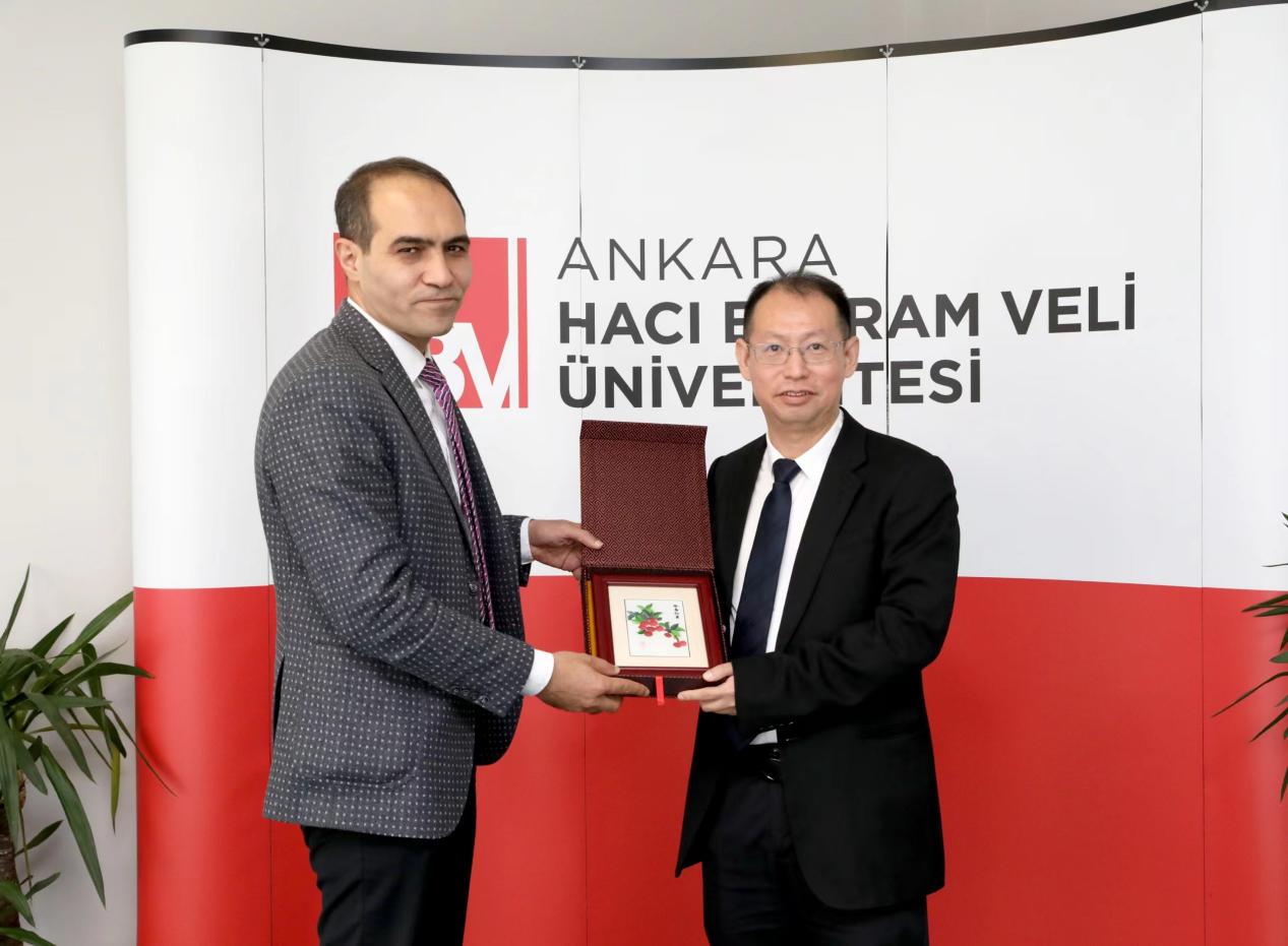 在安卡拉哈哲巴依然威利大学(Ankara Hacı Bayram Veli University)访问期间,代表团会见了副校长库尔萨特教授(Prof. Dr. Kursat Gokturk)、副秘书长雷哈博士(Dr.Reha Bayansar)、国际处负责人居尔嘉纳特教授(Prof. Dr. Güljanat Kurmangaliyeva Ercilasun)、文学院中文系系主任吉来教授(Prof.Dr.Giray Fidan)及相关教师代表。我校曾邀请该校著名汉学家吉来教授为SPARK项目授课,并于今年9月选派了10名学生赴该校交换。此次拜访,双方就进一步加强两校跨学科合作,加强“语言+专业”联合培养模式充分交流了意见,并达成了积极的合作意向。