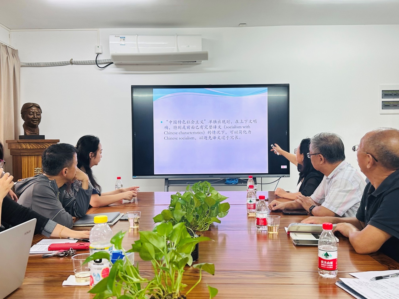 在谈到中国特色对外译介时,杨平强调了在翻译与国际传播中“融通中外”的重要性,并指出把学理性研究和实践结合起来是高校教师的重要任务。她还举出很多典型例子,从话语建构、中国话语的翻译转换、标准化与规范化、加强系统深入研究这四个方面详细阐述了这个理念在实践中的体现,强调要提升中国特色话语的翻译质量,在做到准确达意的同时也要尊重国际传播规律,根据文本实际情况进行增译、释译、编译等调整,从而使译入语读者听得懂、听得进。