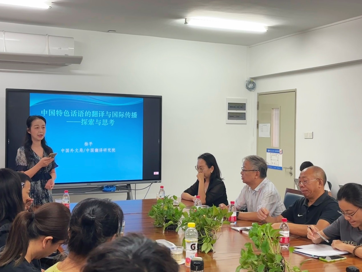 潘莉用“融”、“跨”、“立”概括了此次讲座的内容。她在总结时指出,杨平的讲授深入浅出,对中国特色话语的翻译与国际传播这个主题的阐释分析既全面又有高度。她表示,她开设的国家话语翻译、时政翻译等课程是受益于中国翻译研究院及杨平教授团队的项目成果。