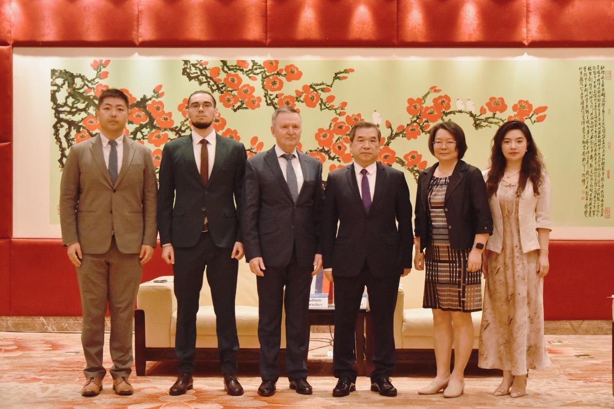本网讯 11月5日上午,莫斯科国立语言大学副校长弗拉基米尔·斯托洛奇夫(Vladimir Storozhev)一行来访我校,焦方太副校长在白云山校区行政楼贵宾厅会见来宾。双方就人才培养、学术合作等进行了交流。