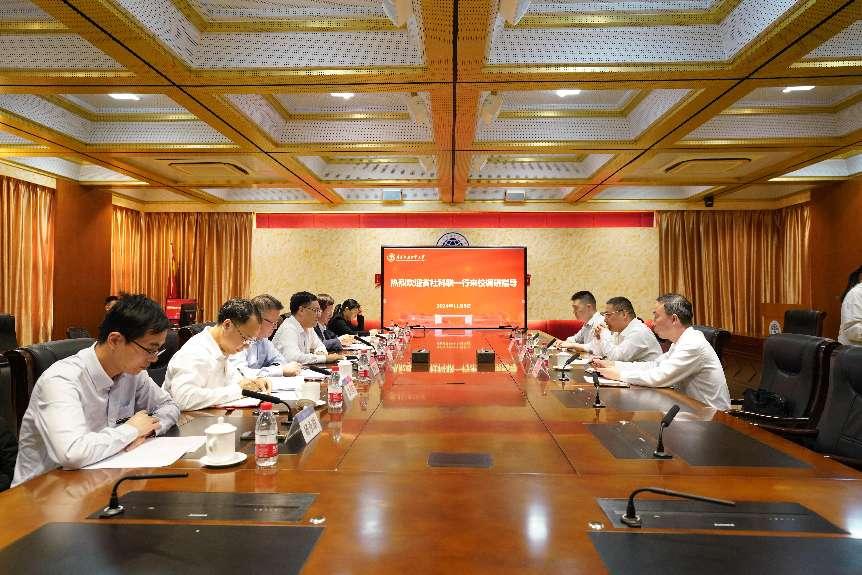 本网讯 11月8日下午,省社科联党组书记、专职副主席李宜航率队,就扎实推进哲学社会科学创新工程,更好助力书写中国式现代化广东新篇章来校调研交流。省社科联党组成员、办公室主任李翰敏,社科普及部副主任范国虎一同参加调研。校党委书记石佑启,党委常委、副校长何传添,党委常委、党委办公室(校长办公室)主任、统战部部长谢伟光等出席调研工作座谈会。