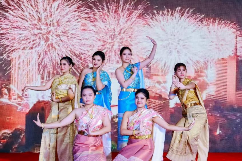 本次开幕式由我校泰语专业中国学生和泰国留学生联合主持。来自我校东南亚学院、留学生学院以及暨南大学的同学们身着泰国传统服饰,以优雅的舞姿呈现了一场精彩纷呈的泰国文化艺术表演。