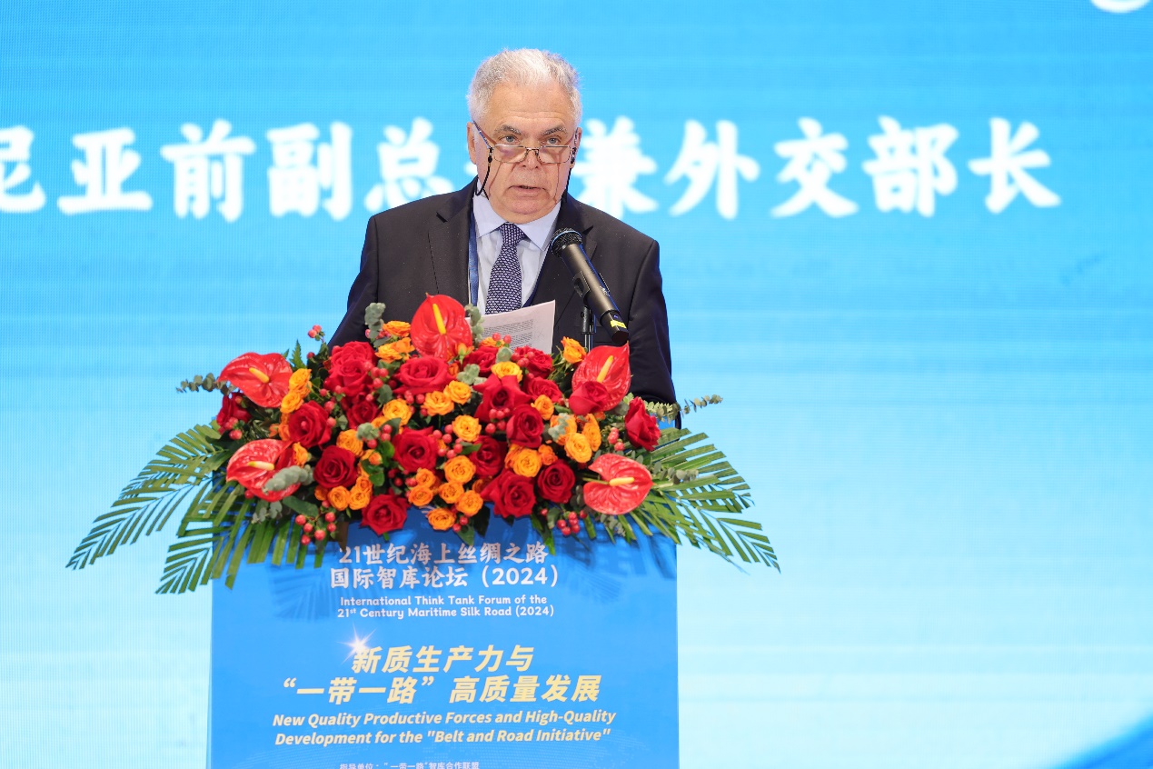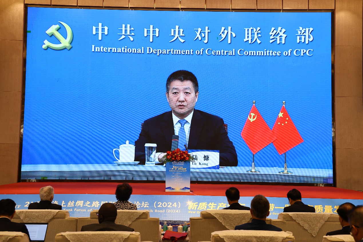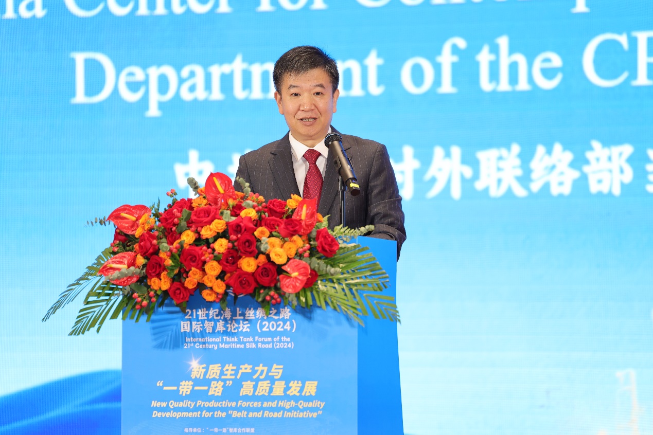 中共中央对外联络部副部长陆慷指出,中国共产党二十届三中全会为发展新质生产力明确了方向,以高科技、高效能、高质量为核心的新质生产力是推动高质量共建“一带一路”的重要抓手。他强调,应抓住机遇,大力发展海洋新质生产力,引领21世纪海上丝绸之路建设。陆慷还呼吁国际社会加强合作,通过数字技术和全球治理平台推动海洋可持续发展,最终实现构建海洋命运共同体的目标。他期待智库专家为海洋新质生产力发展与共建“一带一路”贡献智慧。