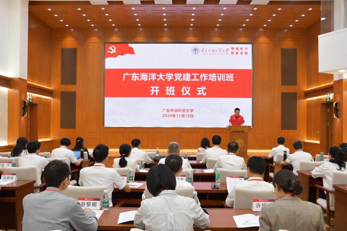 开班仪式上,唐锐在致辞中表示广东海洋大学党委把培训班安排在广外是对我们党建工作的认可和支持,对来参加培训的党务干部表示热烈欢迎,并简要介绍了学校事业总体发展情况,以及我校党建工作理念、机制、做法、成效等方面情况,希望以此次培训班为契机加强校际党建工作交流。