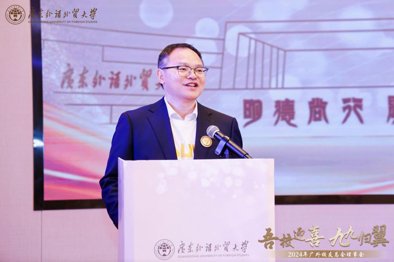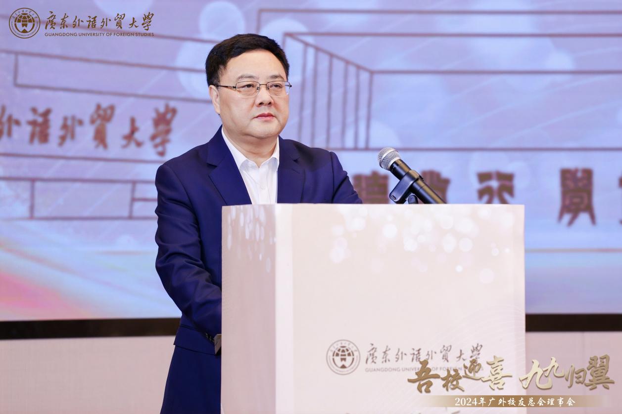 本网讯 11月23日,2024年广东外语外贸大学校友总会理事会暨全球校友代表大会在广州隆重举行。本次活动由广东外语外贸大学校友总会主办、广外物流校友会承办。我校党委书记石佑启,党委副书记、校长闫相斌,副校长刘建达,党委常委、党办校办主任、统战部部长谢伟光,校友事务与合作发展处副处长(主持工作)刘庆丹,以及来自世界各地的160多名校友代表齐聚广州出席本次大会。石佑启为优秀校友工作者颁奖,闫相斌为“广外毅行”获奖队伍颁奖。