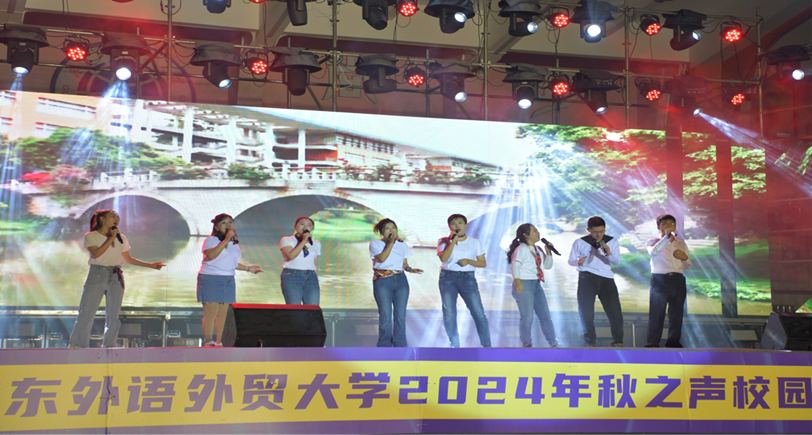 本网讯 为迎接学校60周年校庆倒计时一周年的到来,11月22日晚,由校团委、校庆工作办公室主办、校学生艺术团办公室承办的广东外语外贸大学“爱我广外·歌咏中华”2024年秋之声校园歌手大赛在白云山校区大操场举行。校党委副书记唐锐,党委宣传部、校团委、保卫部等单位相关负责人,全场三四千名广外学子共聚一堂,一齐唱响“青春广外”的激昂旋律。