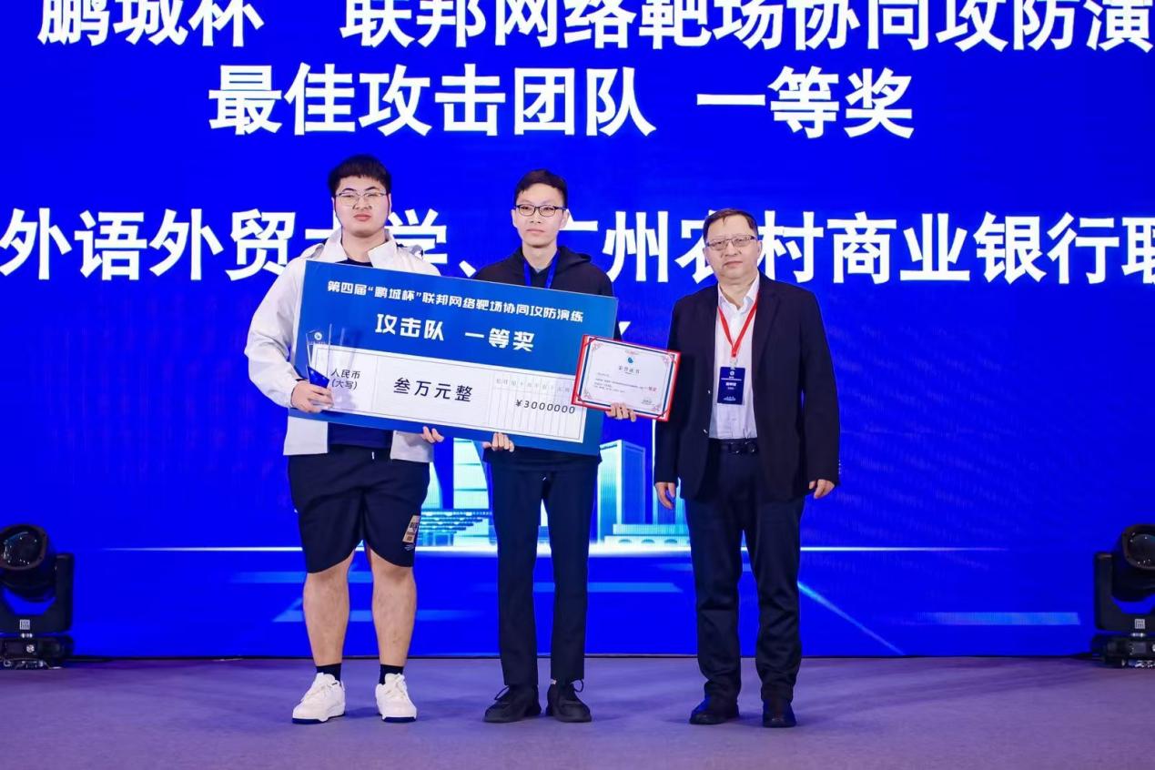 本网讯 近日,由鹏城实验室主办的第四届“鹏城杯”联邦网络靶场协同攻防演练活动落下帷幕。我校信息学院网络空间安全专业李子彦、邓轩翔、张裕凡等三名同学与我校校友、广州农村商业银行职员傅学瑜组成的战队“Base0x_0e”斩获冠军。我校信息学院网络空间安全专业大二本科生周华丰同学作为主力的联合战队“S1uM4i”获季军。