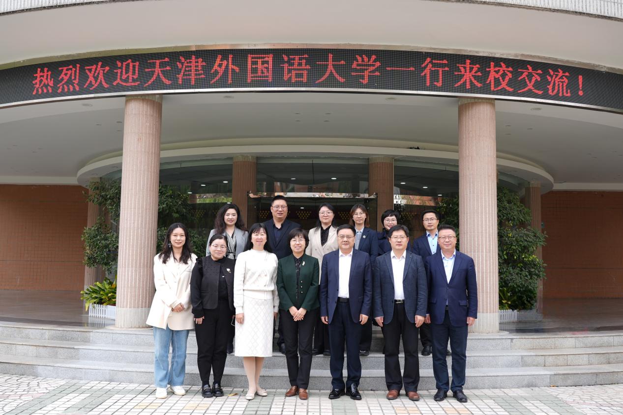 本网讯 12月9日,天津外国语大学党委书记周红蕾一行来访我校。我校党委书记石佑启、副书记葛小月出席交流活动。双方就外语学科合作发展、推进教育教学改革等方面开展交流。