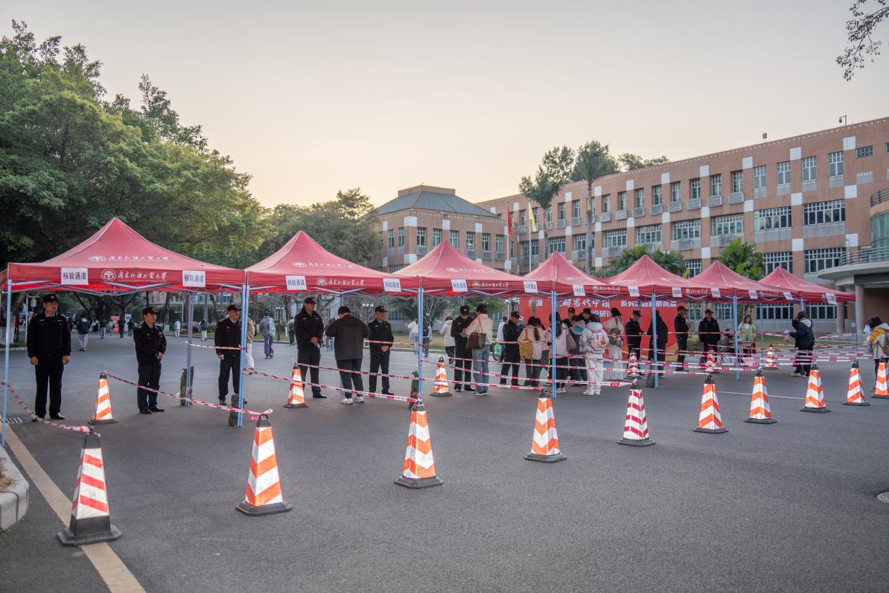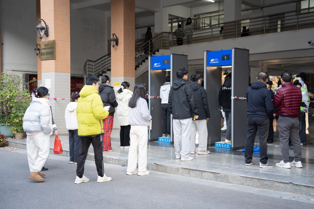 为严防作弊,今年研考全面实施了手机智能安检门检测,设置了全链条安检环节,并配足配齐5G屏蔽仪,营造了一个无干扰的纯净考试环境。此外,学校合理规划了安检通道、随身物品存放处和考生候考区域,提前制定安检方案,做好应急演练,确保考生安检顺畅不拥挤,让每一位考生都能安心应考。