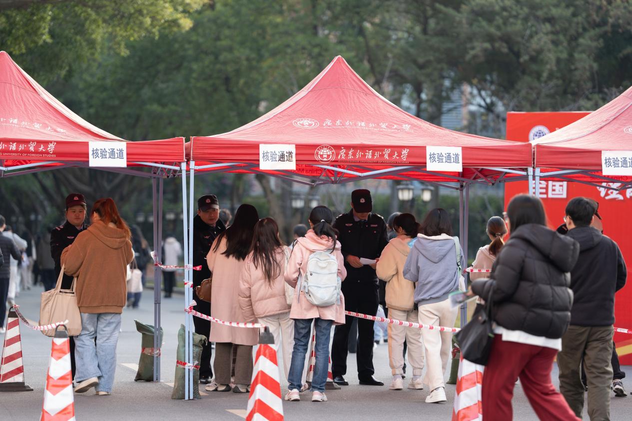 研考恰逢冬至时节,天气冷冽,但学子们的真挚梦想炽热未减,工作人员的暖心服务周到细致。广外以生为本,上下一心,多措并举,用心用情,致力于减轻寒冷天气对考生带来的影响,打造一个安全、温馨的研考环境,护航考生们“研”途一切顺利。