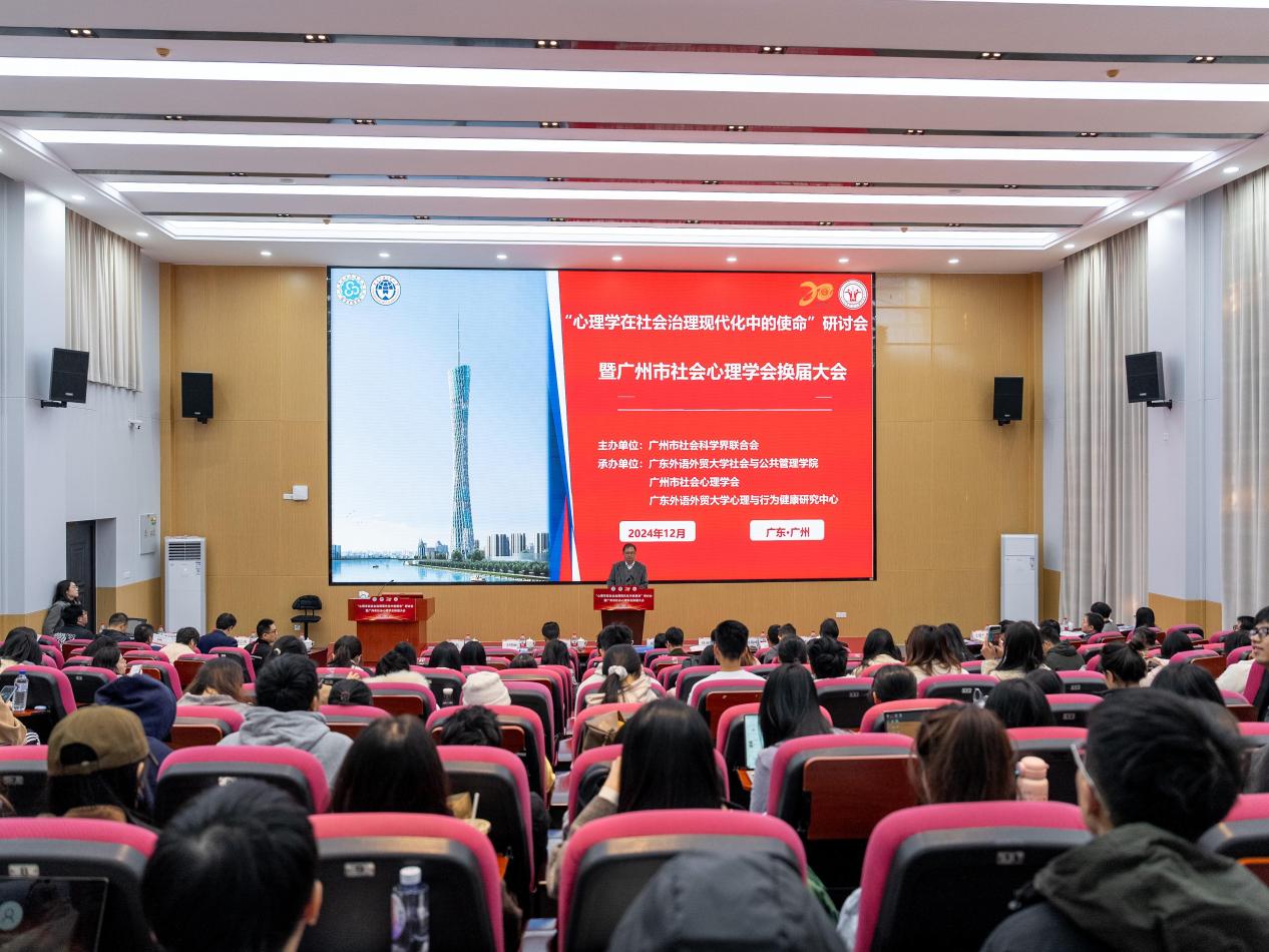本网讯 为深入学习贯彻党的二十届三中全会精神,探讨心理学在助推社会治理现代化中的定位与作用,12月22日,由广州市社会科学界联合会主办,广东外语外贸大学社会与公共管理学院、广州市社会心理学会、广东外语外贸大学心理与行为健康研究中心承办的“心理学在社会治理现代化中的使命”研讨会暨广州市社会心理学会换届大会在广东外语外贸大学举行。来自省内外高校专家学者、政府部门和社会服务机构实务工作者、学生共计200余人参加会议。