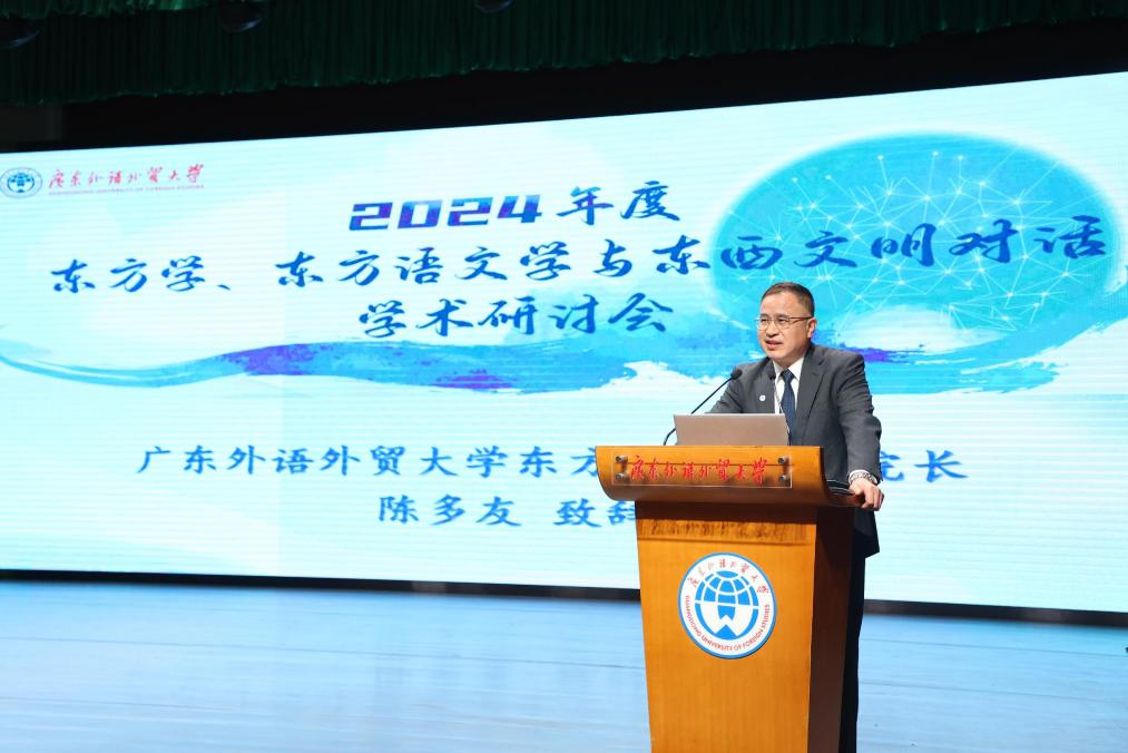 我校东方学研究院院长、教授陈多友在致辞中表示,东方学不仅关注东方语言、文学、历史、哲学等内容,还促进东西方文明交流。在全球化背景下,东方学研究有助于理解东方文化、增强文化自信,并推动不同文明间的相互尊重与理解。