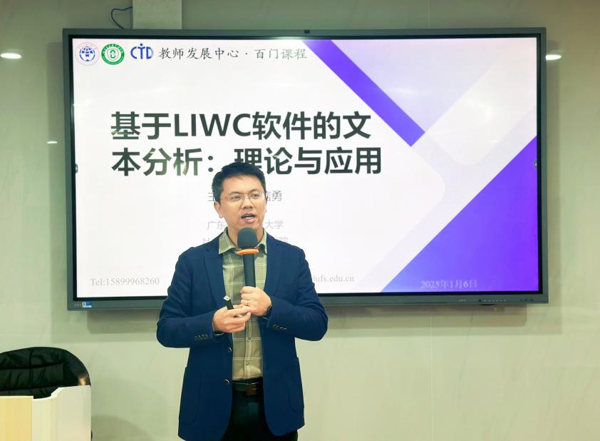 本网讯1月6日上午,人力资源部(教师发展中心)开设的“百门教师发展培训精品课程(百门课程)”——《基于LIWC软件的文本分析:理论与应用》在大学城校区学术交流中心MPA中心第三会议室开讲。主讲教师为我校社会与公共管理学院副院长、教授张信勇。