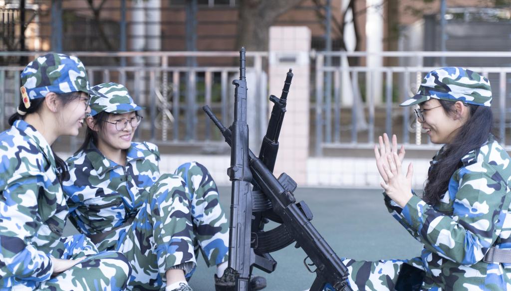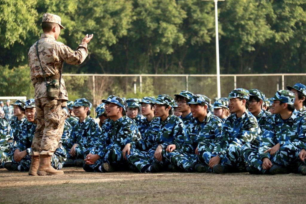 在体育场上,同学们嘹亮的呼号响彻操场,此起彼伏的回声也振奋人心;在校道上,《强军战歌》《团结就是力量》《打靶归来》等军歌被一遍遍传唱,磅礴的力量无坚不摧,似乎能穿透钢铁壁垒。艺术学院的刘同学表示:“每次和大家一起唱军歌时心情都特别澎湃,脑海里浮现出先辈们为我们冲锋陷阵、赴汤蹈火的情景,所以想要用更加铿锵有力的气势唱出来。”肉体展现的力量感与精神之魄力在军旅中相辅相成,点点星火逐渐汇聚成一团炙热的火焰。“大家都在朝一个方向呐喊,那种凝聚力让人振奋!”会计学院的蔡同学激动地说道。