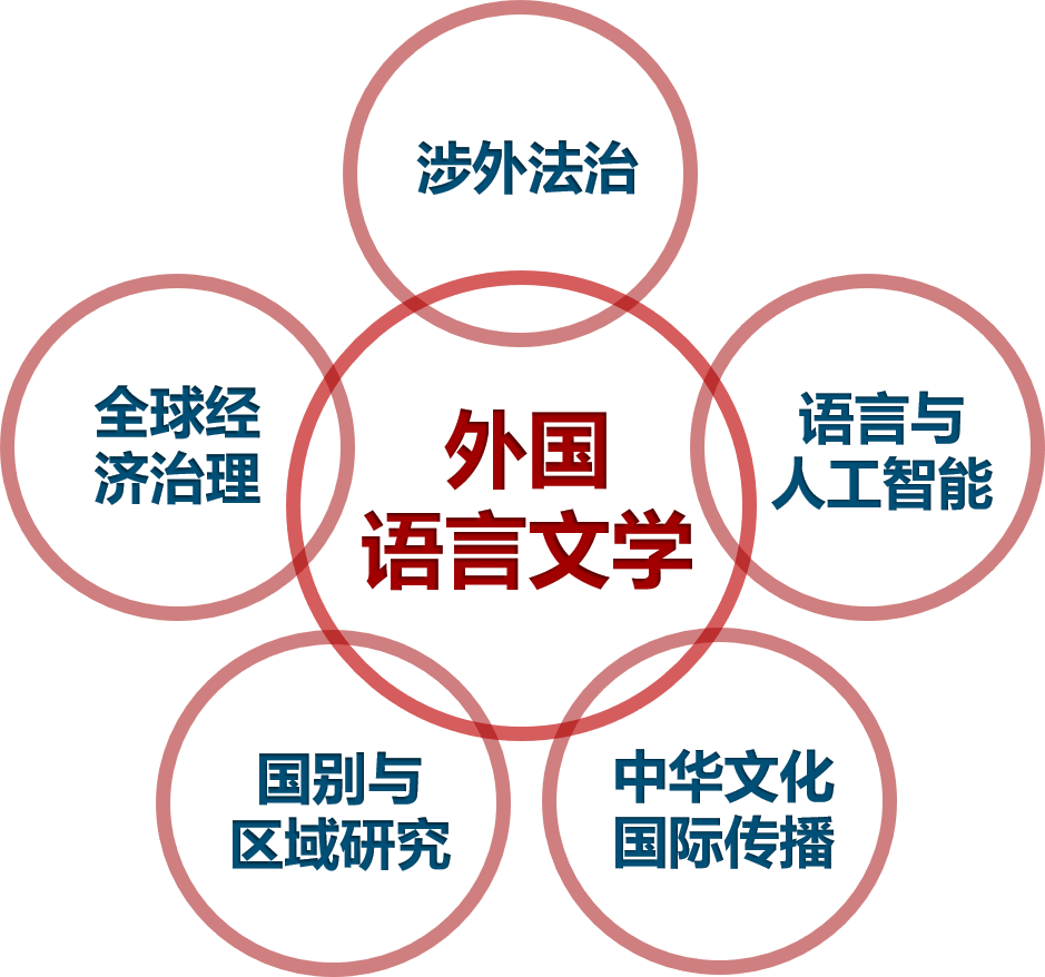 一方面,广外聚焦外国语言学及应用语言学研究、翻译学研究、外国文学研究、区域国别研究、比较文学与跨文化研究五大研究领域,加强外语学科的本体研究,主动参与构建具有中国特色的自主知识体系。另一方面,广外深化学科内涵、扩展学科边界,突显“外语+”优势特色,构建起了区域国别研究、全球经济治理、涉外法治、中华文化国际传播、语言与人工智能等五大交叉学科集群,为构建人类命运共同体、“一带一路”倡议、全球发展倡议、全球安全倡议、全球文明倡议、法治中国、粤港澳大湾区建设等国家和区域战略提供坚实支撑。外语优势和“经管法”等骨干学科强强联合,大力培养关键语种人才、涉外法治人才、国际组织人才、国际传播人才等紧缺型人才,在全国、全省高校树立了标杆。