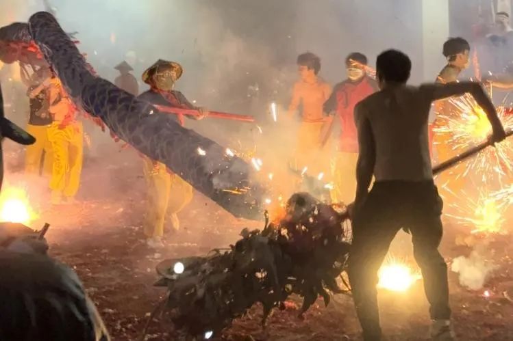 人们相信,在炮火中摸龙头、拔龙须、钻龙肚能带来一年的好运气。在自家的家门前鞭炮放得越多,龙在家门前停留得越久就越吉祥;火烧得越旺,当年运势就越旺。将龙焚烧、送龙升天,熊熊火焰带走一年的不顺与灾祸,新的希望就在眼前。