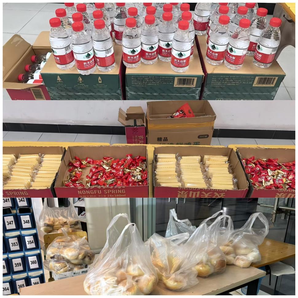 因本次考试时间较长,为保障监考人员在两场考试之间能够及时补充能量,以饱满的精神状态投入到监考工作中,学校还精心准备了简便的零食物资,让监考人员感受到温暖与关怀。