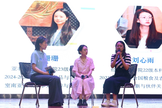 经济贸易学院本科生刘心雨作为本国大学生志愿者代表,服务于联合国粮农组织驻华代表处,负责创新与伙伴关系事务。她以“中国粮食系统数字化转型”“可持续发展示范村”等项目为例,分享了如何通过跨部门协作传播中国经验。她特别提到,在陪同埃及代表访问中国农科院期间,推动中埃技术交流,深刻体会到“中国青年声音是国际合作的纽带”。