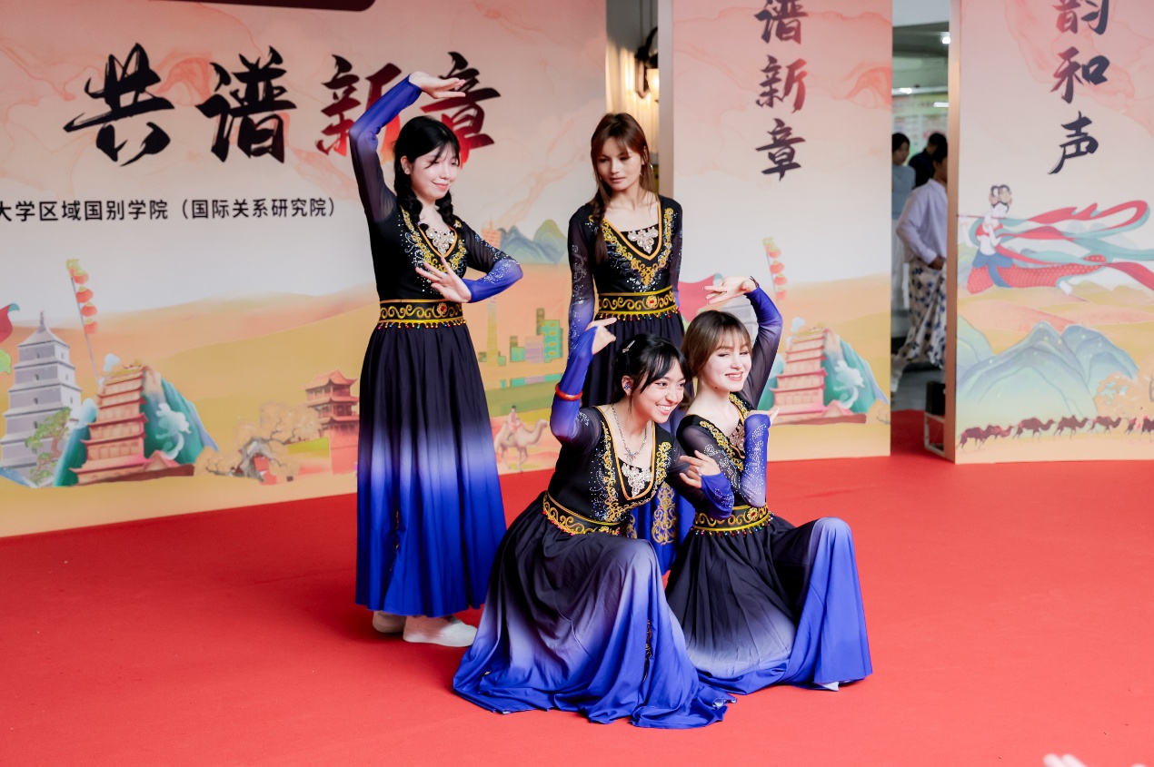 来自新疆的学生演绎《丝路霓裳》节目。她们身着民族华服,以灵动舞姿展现丝绸之路上的独特魅力,舞步间流淌着浓郁的地域风情。