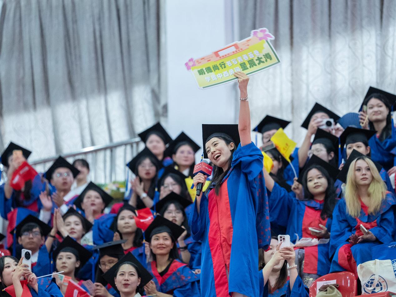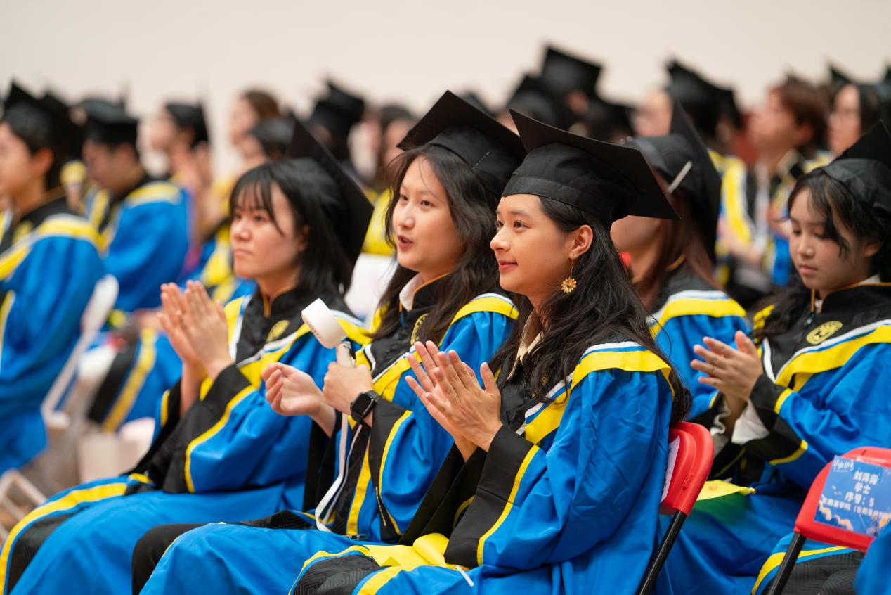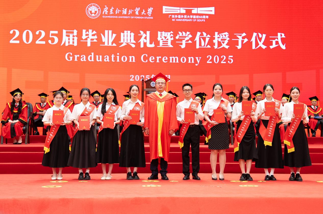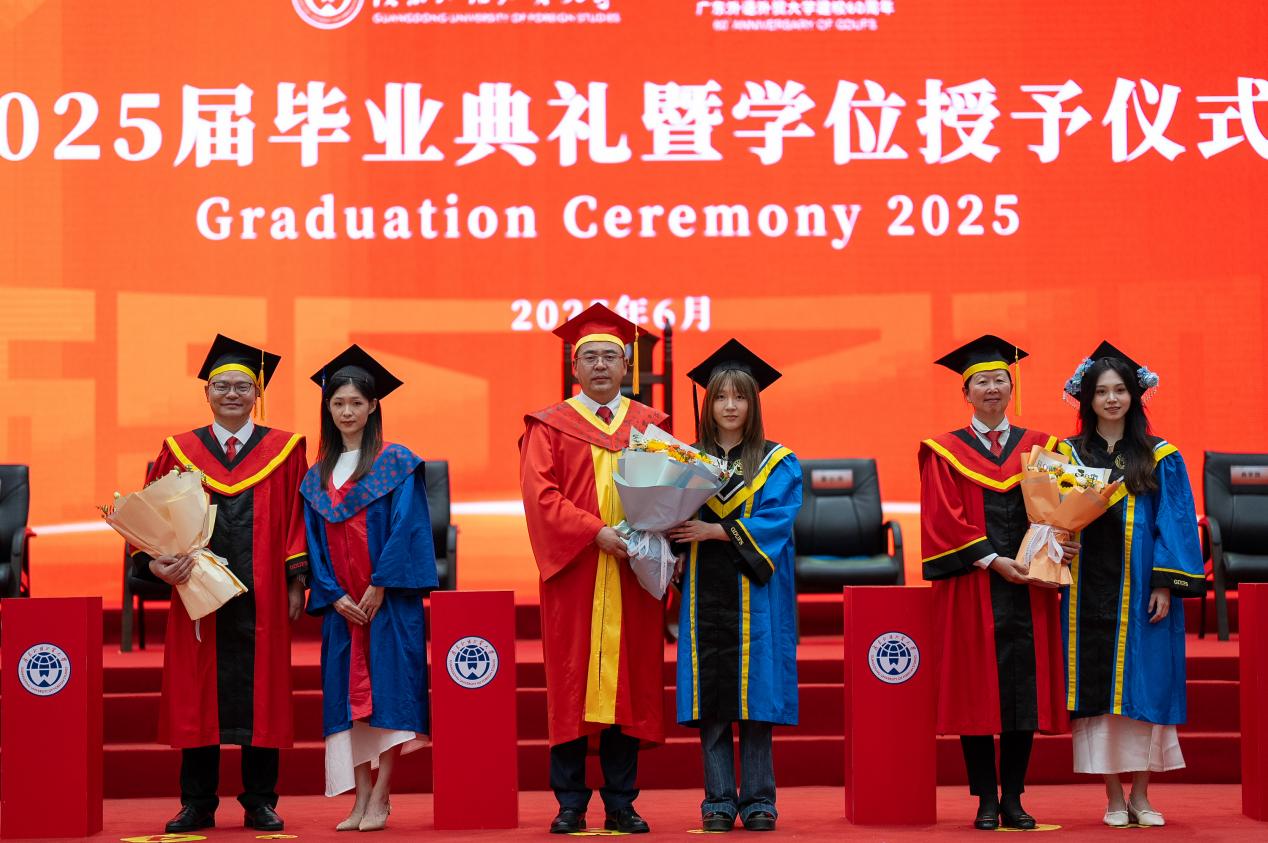 把握脚下路,方能勇立潮头。闫相斌勉励毕业生们深刻理解所处的历史方位,认清机遇与挑战,才能校准方向,砥砺前行。他表示,你们脚下的路通向强国伟业,这是你们施展才华的人生主场。广外已为你们铺就成长的道路,远方需要你们自己迈开脚步,向人生目标迈进,与国家需求同频,跟时代脉搏呼应。你们脚下的路穿越百年变局,这是你们探索未来的全新征途。只要你们秉持广外人敢为人先的闯劲、永不服输的韧劲、善作善成的干劲,就一定能够在风浪中找到新航道,在变局中闯出新天地。你们脚下的路伴随科技浪潮,这是你们自我突破的重要赛道。唯有保持终身学习的毅力,提高拥抱变革的勇气,迈开跨界融合的步伐,用语言能力衔接技术工具,用人文思维驾驭算法逻辑,才能在数字赛道上掌握主动、驰骋未来。