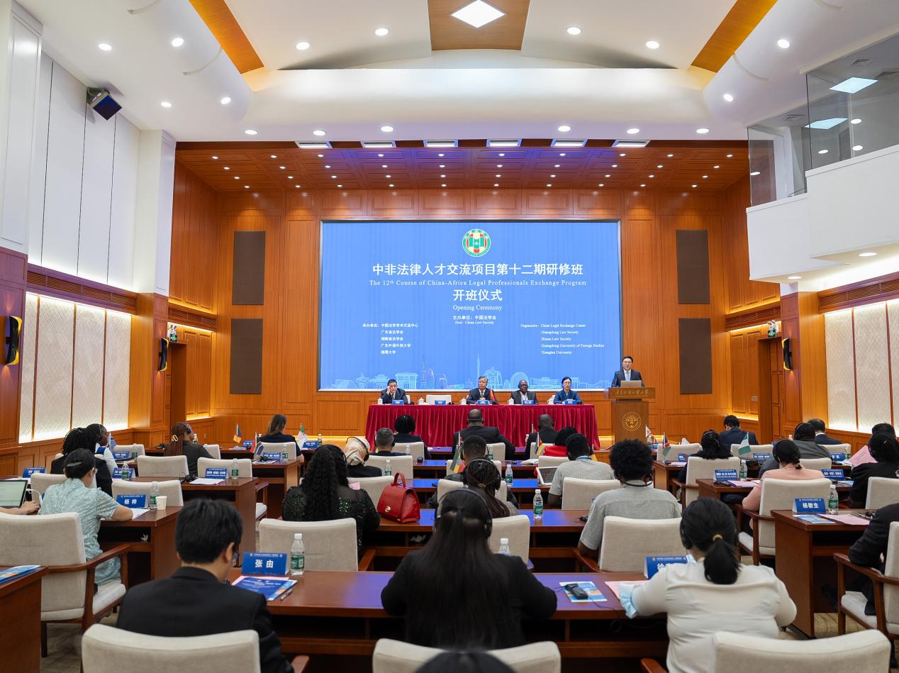 本网讯 7月1日上午,由中国法学会主办,中国法学学术交流中心、广东省法学会、广东外语外贸大学承办的中非法律人才交流项目第十二期研修班在广东外语外贸大学白云山校区国际会议厅开班。中国法学会党组成员、副会长王振江,广东外语外贸大学党委书记、广东省法学会副会长石佑启,广东省法学会党组成员、副会长雷锦华,津巴布韦最高法院上诉法官穆萨夸·约瑟夫,马拉维工业关系法院副主席怀森·恩卡塔出席仪式并致辞。本期研修班共有阿尔及利亚、埃及、埃塞俄比亚、贝宁、博茨瓦纳、津巴布韦、喀麦隆、肯尼亚、马拉维、毛里求斯、莫桑比克、纳米比亚、南非、尼日利亚、坦桑尼亚、乍得等16个国家的25位学员参加。开班仪式由中国法学会学术交流中心副主任潘新艳主持。