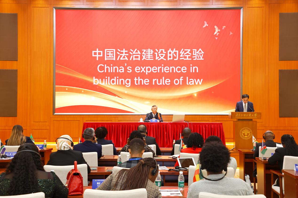 开班仪式后,中国法学会党组成员、副会长王振江面向非洲学员开展以“中国法治建设的经验”为主题的讲座。