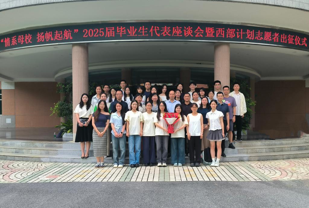 本网讯 6月26日上午,我校在白云山校区第二会议室举行“情系母校 扬帆起航”2025届毕业生代表座谈会暨西部计划志愿者出征仪式。校党委副书记葛小月,学生工作部、校团委、研究生院、学生就业创业中心、校友事务与合作发展处相关负责人和2025届应届毕业生代表、西部计划志愿者代表参加座谈会。