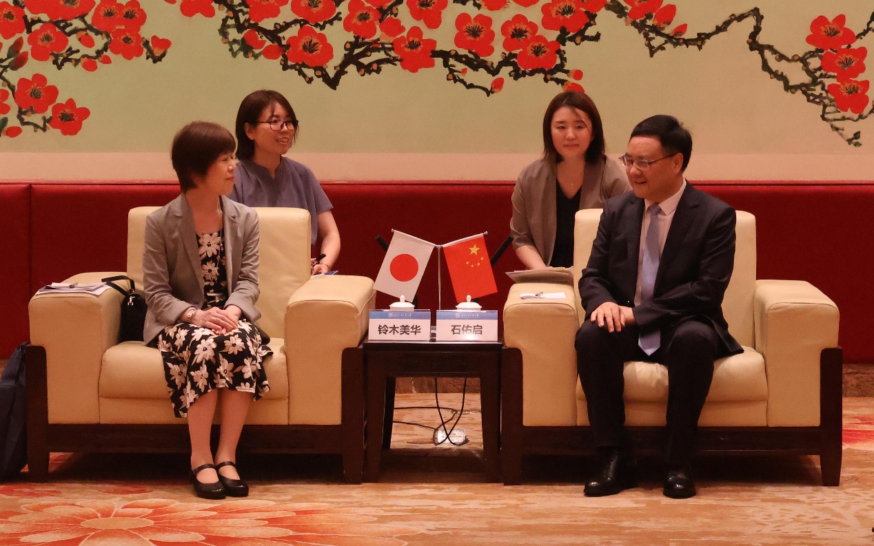 本网讯 6月28日下午,日本创价大学校长铃木美华一行来访我校,我校党委书记石佑启在白云山校区行政楼贵宾厅会见来宾,双方就深化教育合作、推动中日人文交流等议题展开深入会谈。