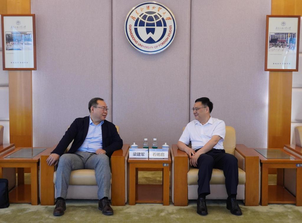 宣讲会前,校党委书记石佑启在行政楼迎宾厅会见外交部亚洲司副司长梁建军、欧洲司副处长费瑶、干部司考录培训处王骜南二秘一行。石佑启对梁建军一行的到来表示欢迎,对外交部一直以来给予广外的支持表示感谢。他指出,广外主动适应国家重大战略需要,着力培养具有家国情怀、国际视野、过硬本领、创新能力、担当精神的高素质复合型国际化人才,期待双方进一步加强沟通合作。梁建军副司长表示,广外已为外交部输送不少优秀毕业生,他鼓励有志于从事外事外交工作、且各方面表现优秀的学生积极报考外交部,为国家外交事业贡献力量。