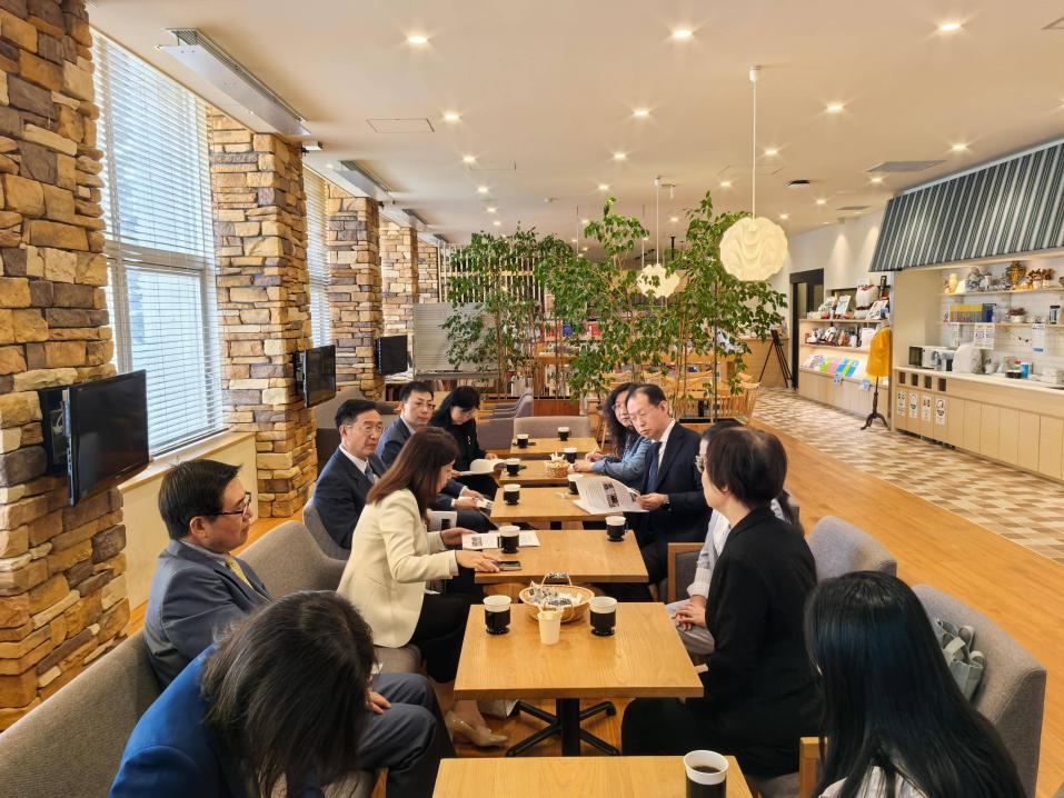 随后,代表团前往札幌大学孔子学院,与中华人民共和国驻日本国大使馆杜柯伟公参一行进行了会谈,围绕孔子学院如何在日发挥重要作用,交换了宝贵意见。杜柯伟公参听取了我校孔子学院的工作介绍,高度肯定了我校孔子学院取得的成效,并建议我校可以加强与在日企业和日本友好之窗等多方合作,促进孔子学院事业新发展。