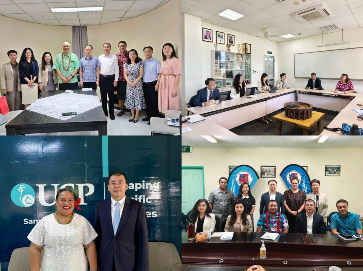 本网讯 10月17日至24日,我校校长闫相斌率团访问萨摩亚、汤加,期间拜访了萨摩亚教育部长、萨摩亚国立大学、萨摩亚国家科学院、南太大学阿拉法分校、中国驻萨摩亚大使馆、汤加国立大学、中国驻汤加大使馆,回访了参加我校“太平岛国高级公务员培训班”及“青年领袖培训班”的萨摩亚籍及汤加籍学员,取得丰硕成果,深化了我校与太平岛国高校和科研机构的教育合作。